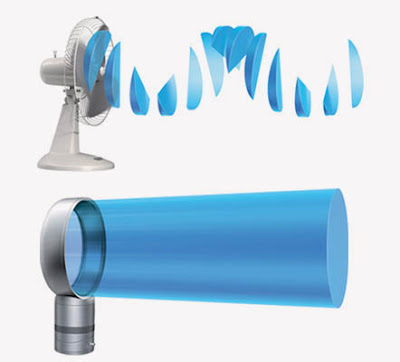 Sempre foi difícil harmonizar um ambiente com ventiladores, procurando um para colocar na casa de um cliente, que tem alergia aos condicionadores de ar, encontrei esse ventilador que é uma verdadeira revolução e deve ficar muito interessante, talvez num criado mudo ou numa estante. O fabricante é a Dyson, o ventilador Air Multiplier, não tem hélices (elas estão embutidas dentro dele, fazendo com que o ar seja empurrado de baixo para cima, formando um anel de ar).