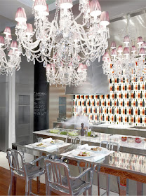 cada quarto, em cada momento. Ambiente contemporâneo, cheio de cores, couro e metais, belos lustres de cristal.