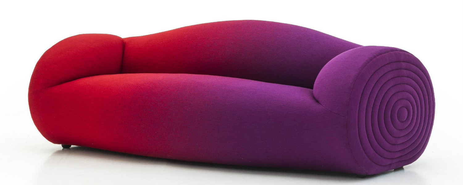 Sofá Glider, por Ron Arad. Lançado em 2015, o sofá da marca italiana Moroso foi desenhado a partir de uma peça única, modelada para dar forma a um sofá convencional – com assento, encosto e braços. Em espuma e aço.