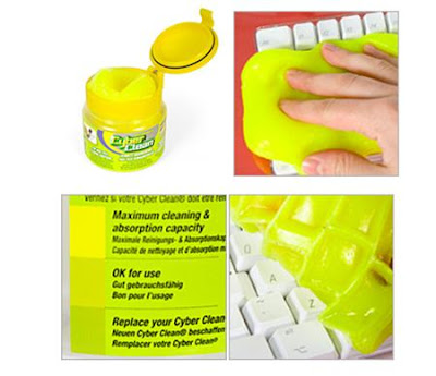 O teclado é uma importante ferramenta de trabalho, com o tempo fica sujo e amarelado. Por mais que se limpe, ele nunca fica com a aparência de quando foi adquirido. Agora já existe o Cyber Clean, que foi criado para remover todas as bactérias, fungos, sujeira e tudo mais que se esconde entre as teclas do seu teclado. É uma espécie de “massinha” que absorve pele morta, cabelo e comida, deixando seu teclado limpo e livre das nojentas bactérias. A tal massinha usa uma fórmula viscosa e elástica, para penetrar nos menores espaços.